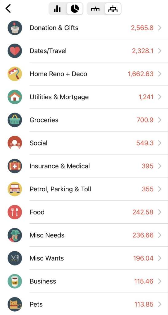 To read about my past monthly budget update, click here. Graphs are taken from my expense-tracking app Money Lover (find out your budgeting style)